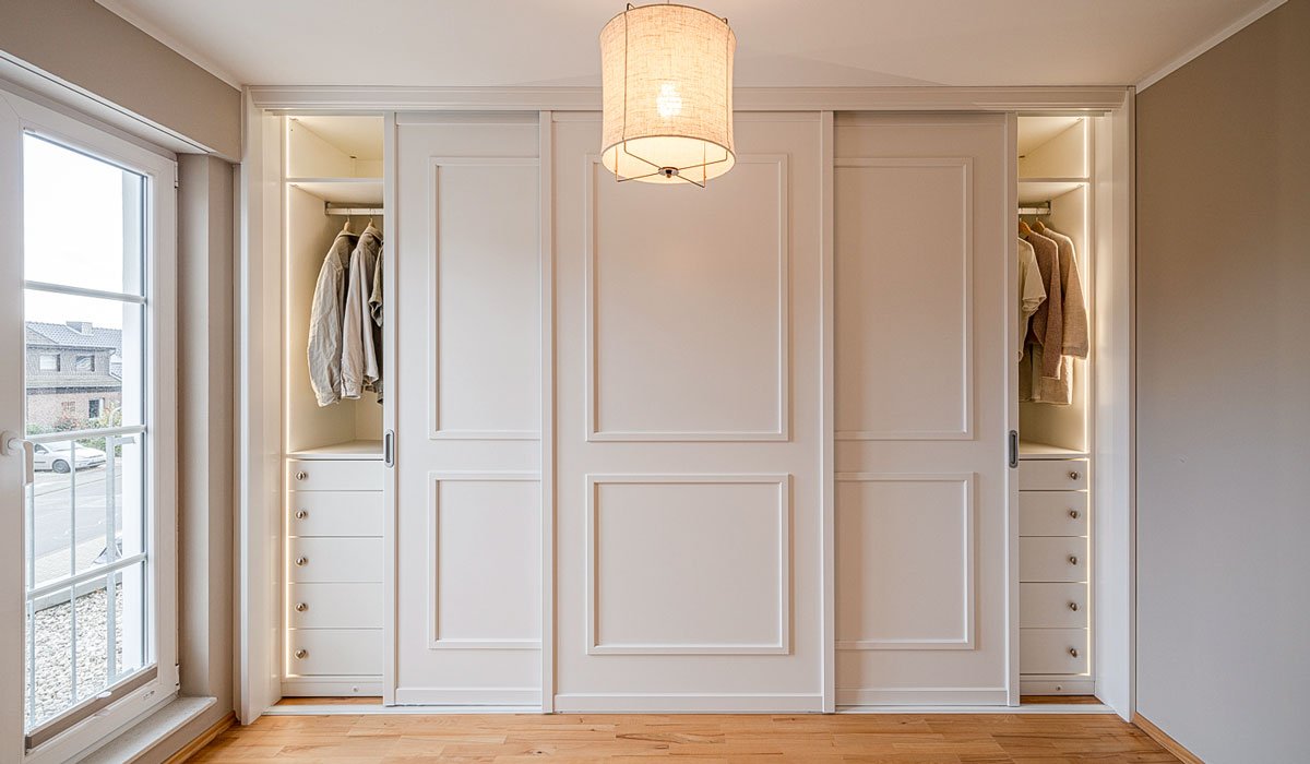 Do you dream of a home in which every corner is used optimally and design and functionality are harmoniously combined? Then you have come to the right place! A made-to-measure built-in wardrobe from CABINET is not just a piece of furniture, but an individual solution that is precisely tailored to your needs and the conditions of your room. Our made-to-measure built-in wardrobes – optionally with hinged doors or wardrobes with sliding doors – adapt to your space – whether in a narrow niche, under a sloping roof, as a bedroom wardrobe system or in a large, open space. With a built-in wardrobe, you use every millimetre efficiently and at the same time create aesthetically pleasing order. Thanks to an almost unlimited choice of materials, colours and designs, you can design your built-in wardrobe exactly to your taste.